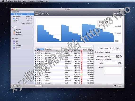 Squirrel v0.9.5 MacOSX 英文正式版(個人財務管理軟體)
