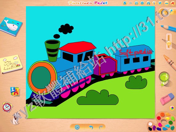 PhotoStudio Paint支援兩類互動範本:輪廓圖範本可讓孩子使用色彩繽紛的圖案盡情地