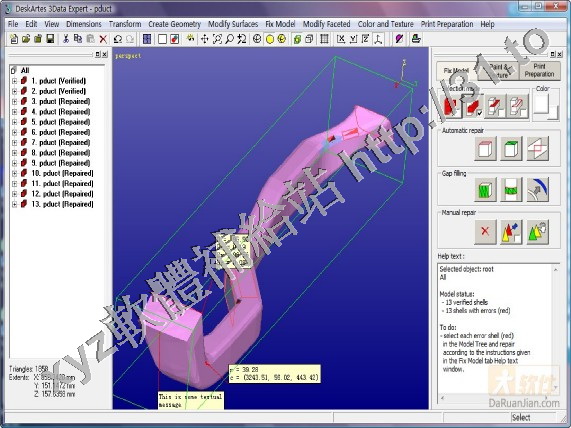 3Data Expert是一款適用於Rapid Prototyping針對3D CAD文件進行修復、轉換和操作的專業工具。