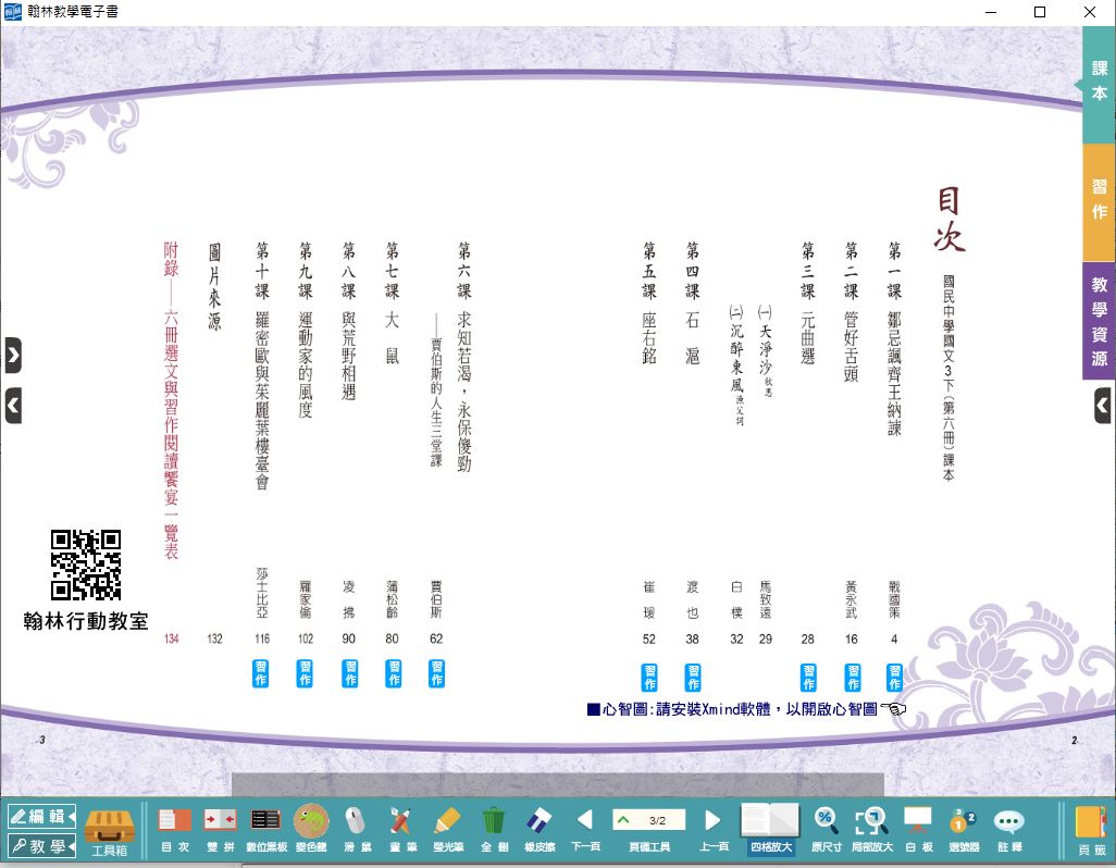 版 國文電子書 3年級(含課本、習作含解答、課堂練習、國語作卷)教學光碟DVD版