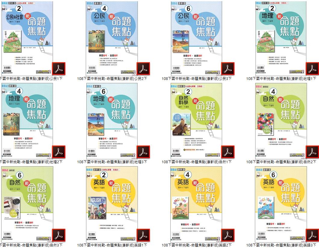 108學年下學期 國中新挑戰 命題焦點 康軒版 1-3年級(含2-3年級英語聽力測驗MP3)全科目 卷類光碟DVD版