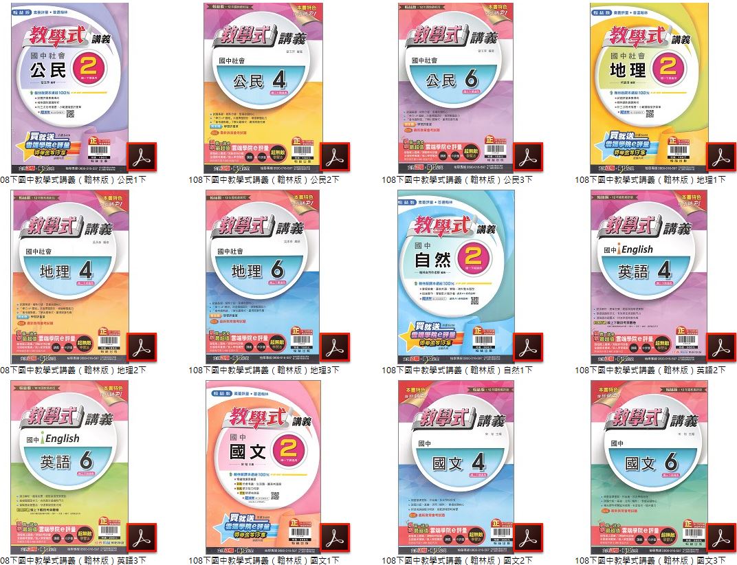 108學年下學期 國中教學式講義 翰林版 1-3年級 全科目 講義光碟DVD版