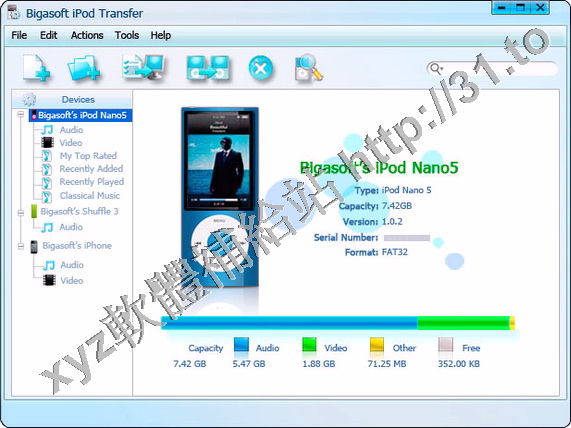 Bigasoft iPod Transfer支援所有的iPod,包括iPod Classic、iPod nano、