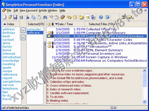 Personal Knowbase is a program for organizing free-form