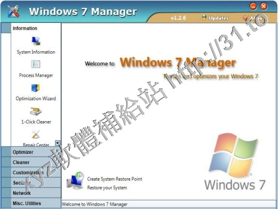 • Yamicsoft Windows7 Manager v4.0.8 英文正式版(Widnows7 總管是優化和設置軟體)