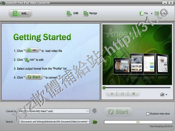 Aneesoft Free iPAD Video Converter是完全免費和簡單易用的轉換視頻到Apple iPAD的視頻