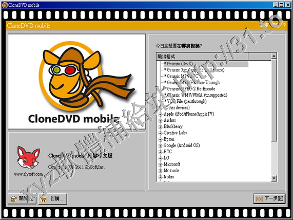 • SlySoft CloneDVD Mobile v1.1.5.0 繁體中文/簡體中文/英文 多國語言版(將電影DVD轉換為手提式設備可以播放格式的軟體)